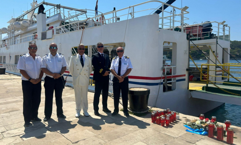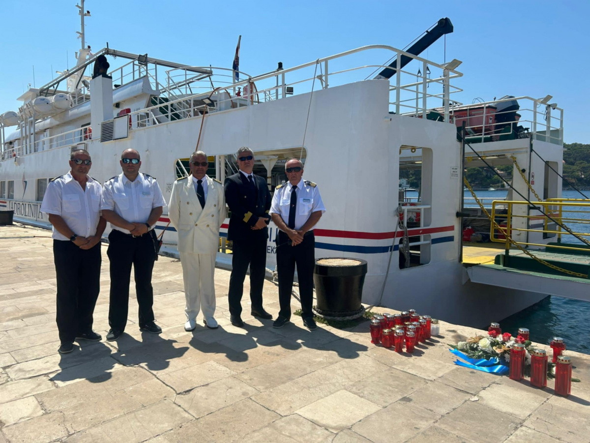 Nakon zajedničke molitve djelatnika, delegacija Uprave Jadrolinije u pratnji pomoraca, položila je vijenac u more u lošinjskom akvatoriju i odala počast prerano i tragično stradalim kolegama na brodu Lastovo.