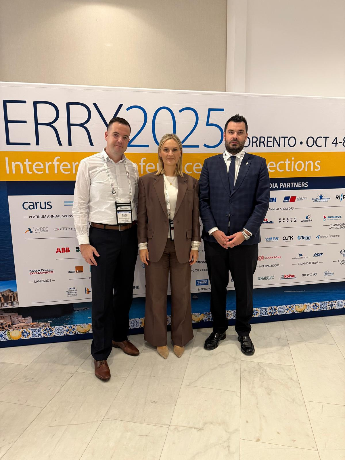Članovi Uprave Jadrolinije Robert Blažinović, Marija Zaputović Mavrinac i Marko Novaselić, prisustvovali su 49. po redu Interferry konferenciji, održanoj u Sorrentu. Ova najveća međunarodna konferencija okuplja ključne aktere brodarske industrije radi razmjene iskustava i ideja. Ovogodišnja tema konferencije, „Connections“, naglasila je važnost povezanosti u svim aspektima pomorskog prometa – od zajednica i putnika do razvoja tehnologije, novih rješenja i infrastrukture.